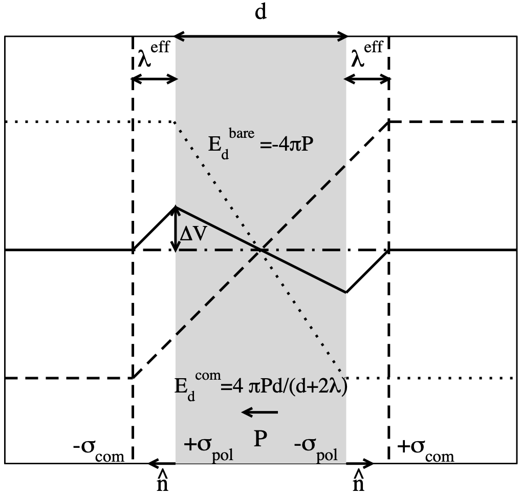 Figure 2. Depolarization field of an imperfectly-screened ferroelectric slab. Extracted from Ref. [1].