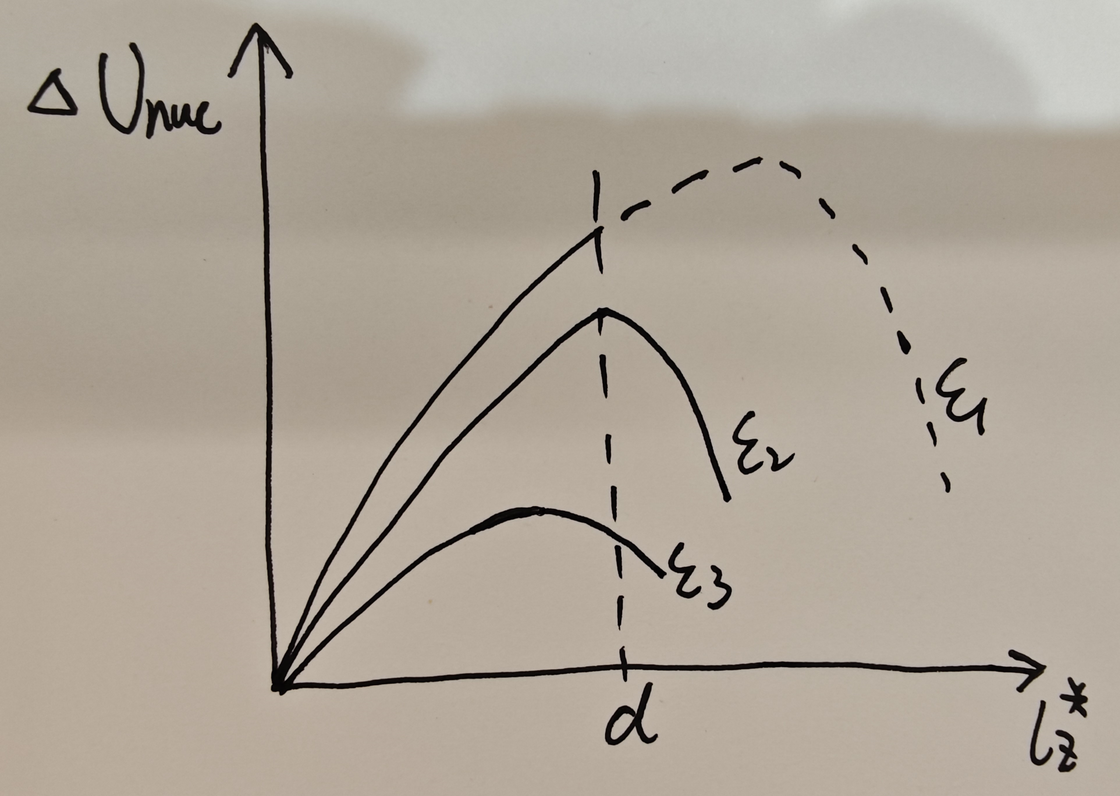 At a give electric field \(\mathcal{E}\) , our LGD model fast predicts the critical size \(𝑙_𝑧^∗(\mathcal{E})\) by calculating saddle point of \(\Delta U_{\mathrm{nuc}}(T)\).